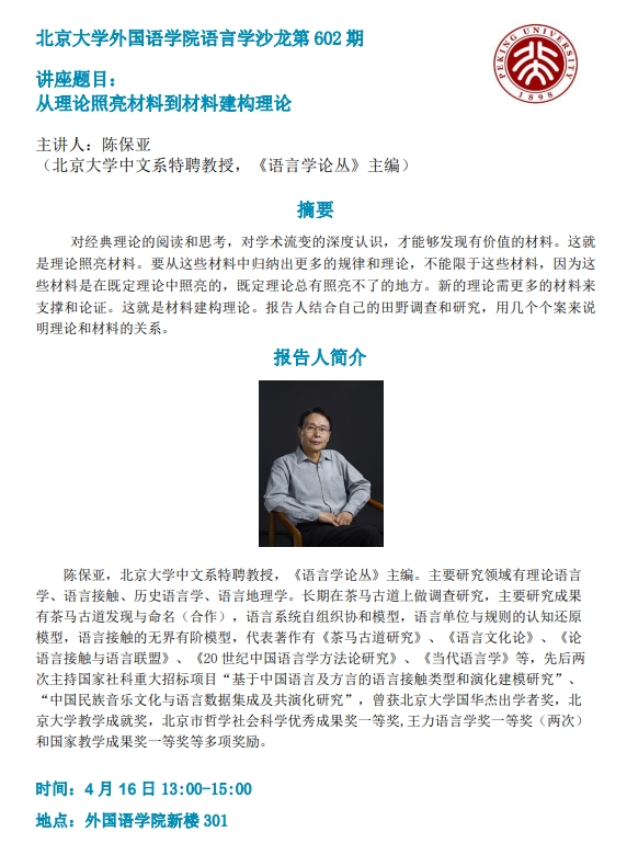 德赢vwin体育官网语言学沙龙:从理论照亮材料到材料建构理论