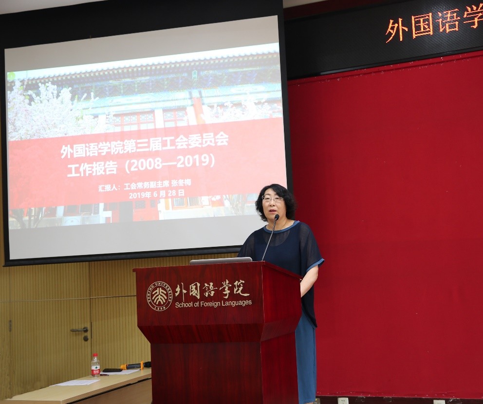 学院工会委员会常务副主席、德赢vwin体育官网副院长张冬梅老师代表上一届工会向大会做了工作报告。过去的十几年间,在学院党委的指导下,在学院行政领导班子的大力支持下,德赢vwin体育官网工会不断加大投入,努力加强自身建设,充分发挥职能,在推动民主管理、提高教师素质、关爱职工身心健康、丰富文化生活等方面发挥了积极作用,为营造和谐学院、创建一流学科做出了重要贡献。报告赢得了在场会员代表的阵阵掌声。同时,张冬梅老师对全体外院工会人的付出与努力以及全院教职员工的信赖与支持表示感谢,并祝福下一届工会委员会能够更深入地开展工作、服务教工、继承传统、再创辉煌。