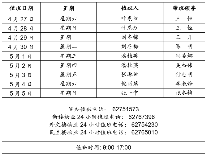 2024年劳动节假期德赢vwin体育官网带值班表