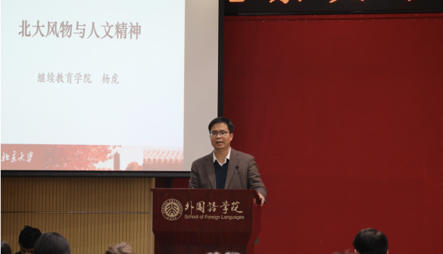 12月18日下午,德赢vwin体育官网“北大风物与北大精神”主题讲座在外院新楼501报告厅举行,邀请继续教育学院副书记杨虎老师担任主讲人,院党委书记李淑静老师出席活动。全体团校学院、初级党课学员共100余人共同参与学习。
