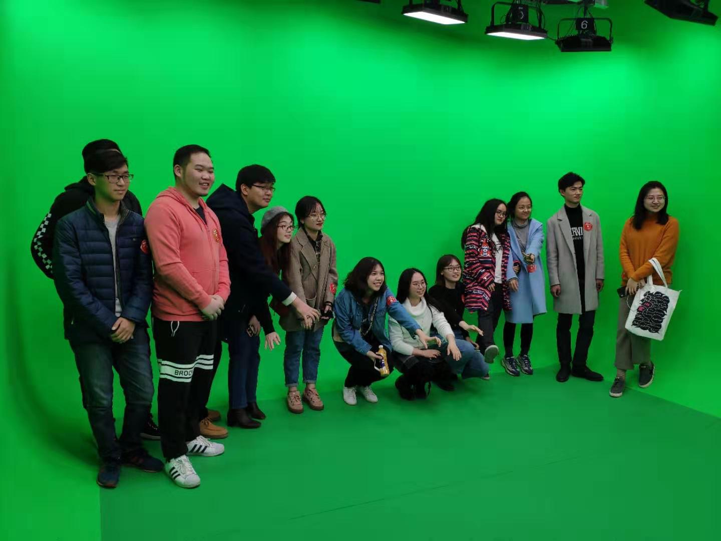 随后,同学们来到绿幕直播间。绿幕直播是学而思网校英语外教课的主要教学方式,在直播间里,同学们一走上绿幕讲台,屏幕上就出现了教学场景与同学图像实时结合的画面。在讲解老师的指导下,同学们体验了绿幕直播的教学流程,领略了互联网技术对教育带来的巨大改变。接着,同学们与直播课教师进行深入交流,各自就直播授课的规模、优势、教学方式发表看法。