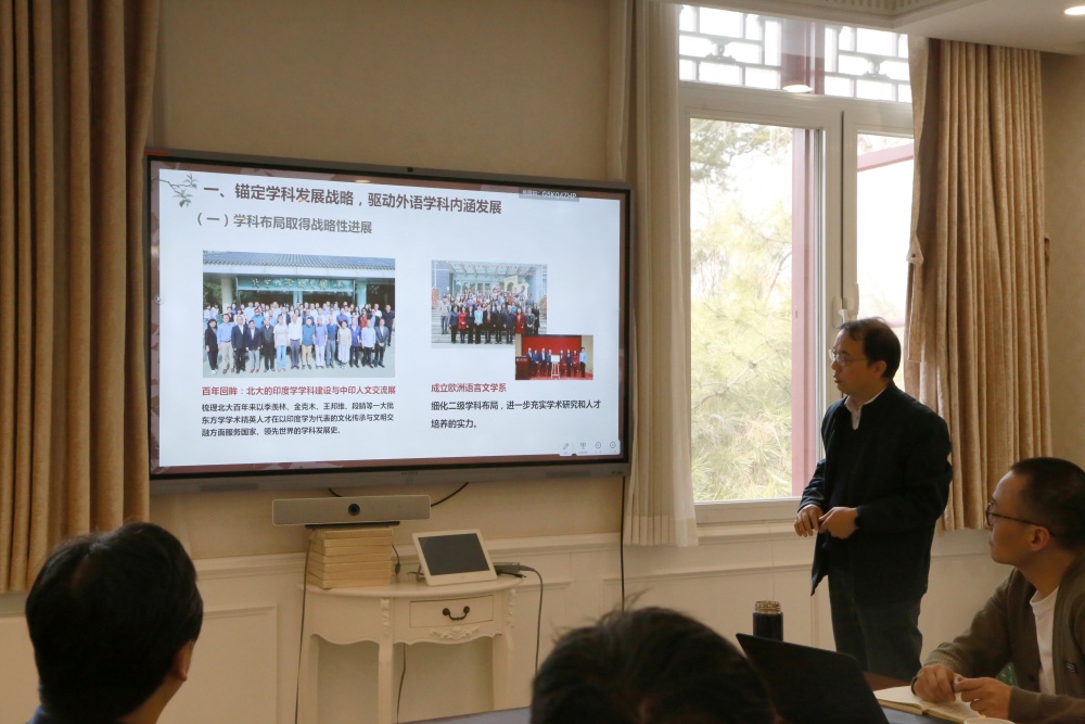 随后,院领导班子与统战人士代表进行亲切交谈。代表们纷纷发言,各抒己见,就教学科研、人才培养、教师队伍建设等方面提出了宝贵的意见和建议。九三学社社员、西亚系教授拱玉书表示,自己虽已退休但仍笔耕不辍,分享了自己在冷门绝学研究领域的探索与成果,并呼吁更多年轻人投身于此,共同推动古代文明研究和文献翻译事业的发展。致公党党员、东南亚系助理教授谢侃侃认同翻译的重要性,同时也就学院如何助力青年教师成长提出建议。与会代表们立足自身岗位对外院与外语学科的发展进行了深入思考,展现出高度的责任感和使命感。