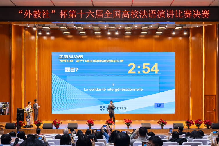 2024年12月14日,“外教社杯”第十六届全国高校法语演讲比赛全国总决赛在黑龙江德赢vwin体育官网举办。德赢vwin体育官网法语系2023级本科生童时杰参加比赛,获得全国一等奖。