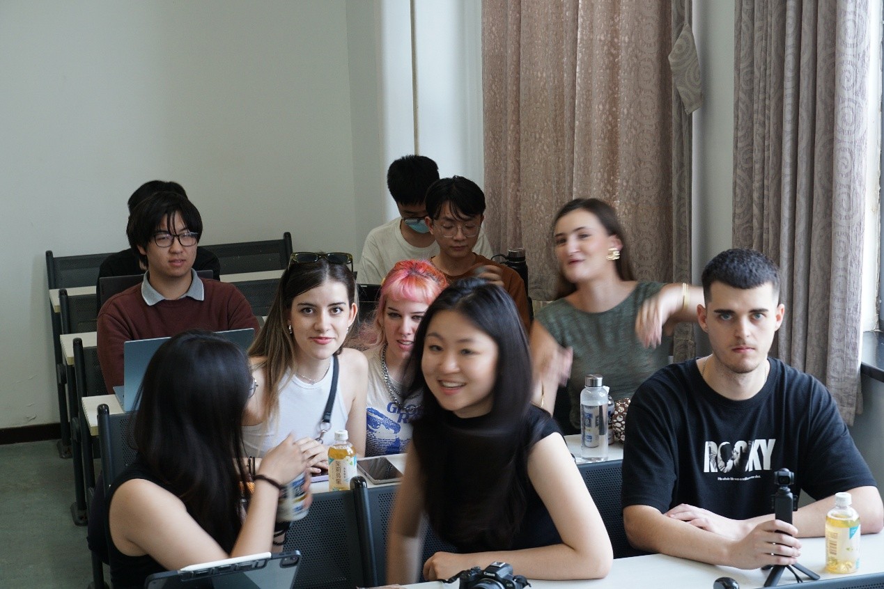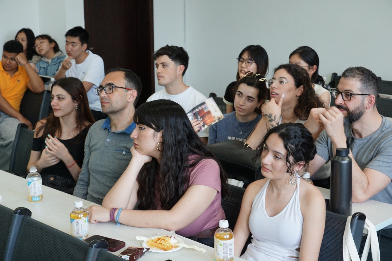 2025年4月15日下午,参加2025年德赢vwin体育官网-西班牙格拉纳达大学孔子学院春令营活动的18位学生(以下简称格大孔院同学)与我校西班牙语言文学系2022级、2023级、2024级部分学生(以下简称北大西语系同学)一同举行了主题交流活动。在本次活动中,北大西语系同学通过组织3个互动游戏与微讲座,从“语言文字”与“音乐”两个角度向格大孔院同学展示了中国的传统与当代流行文化。双方在活动中积极互动、对话,增进了对彼此语言与国家的了解。
