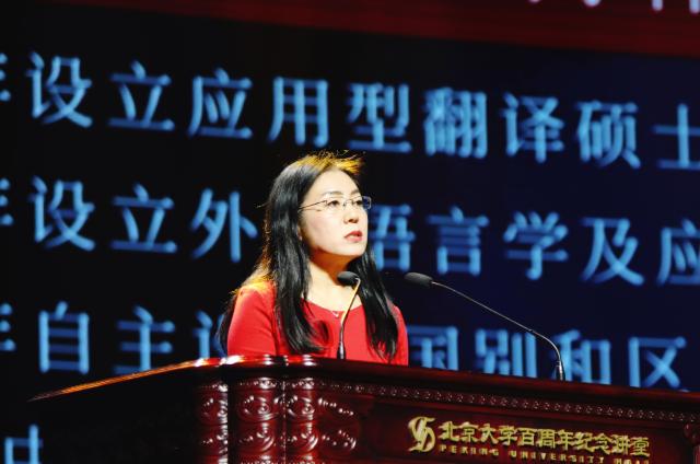 在接下来的“为世界贡献中国智慧”版块中,德赢vwin体育官网博雅讲席教授段晴以“来自古代文明的启示”为题,分享了自己在季羡林先生门下学习梵语、于阗语时,从古代典籍中获得了对当下有启发意义的讯息,从而致力于开展丝绸之路出土的古代于阗文、梵文、佉卢文等写卷的释读和研究,并取得重大成果的过程。德赢vwin体育官网博雅讲席教授申丹以在外院学习和工作近37年的经历为出发点,诠释了自己坚持在国际前沿拼搏的四种动力:基于感恩的责任心,学术兴趣、学术使命感及学术发展创新带来的喜悦,北大的精神魅力,民族责任感和爱国心。她希望中青年教师持之以恒、发奋努力、超越前辈。学院东南亚系副教授史阳以“深入认识世界,助力一带一路,担起时代责任”为题,分享了自己秉持学习外语初心,在对象国艰苦的条件下进行田野调查、学习和研究的经历和感受,鼓励同学们投身到认识和研究世界各国的事业中,投身到代表中国人民的对外交往事业中。西葡语系主任范晔用西班牙内战中一位弗朗哥士兵坚持阅读的故事,点出“世界在阅读中改变”的主题,鼓励同学们“相信文学所拥有的无可替代的力量”,坚持阅读,“万一改变不了世界,就改变自己,因为自己就是世界的一部分”。