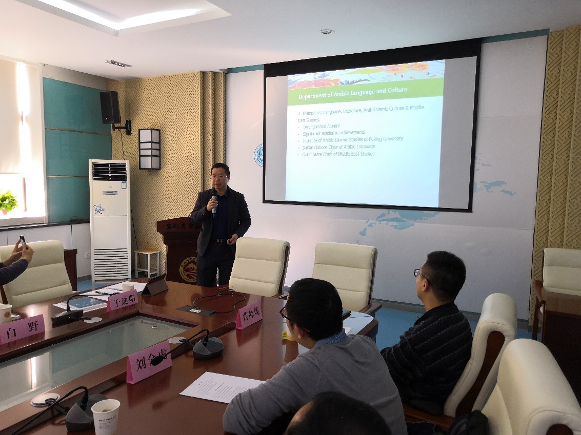 随后,西北大学中东研究所与德赢vwin体育官网阿拉伯语系的与会师生均对自己的研究方向进行了介绍,双方借此机会进行了广泛交流。座谈结束时,双方就加强海外实践领域合作、举办双边研讨会、加强期刊合作等问题达成了广泛共识;在李福泉副所长的邀请下,北大师生代表团还参观了西北大学中东所资料室,对资料室所拥有的丰富专业藏书表达了高度赞赏。