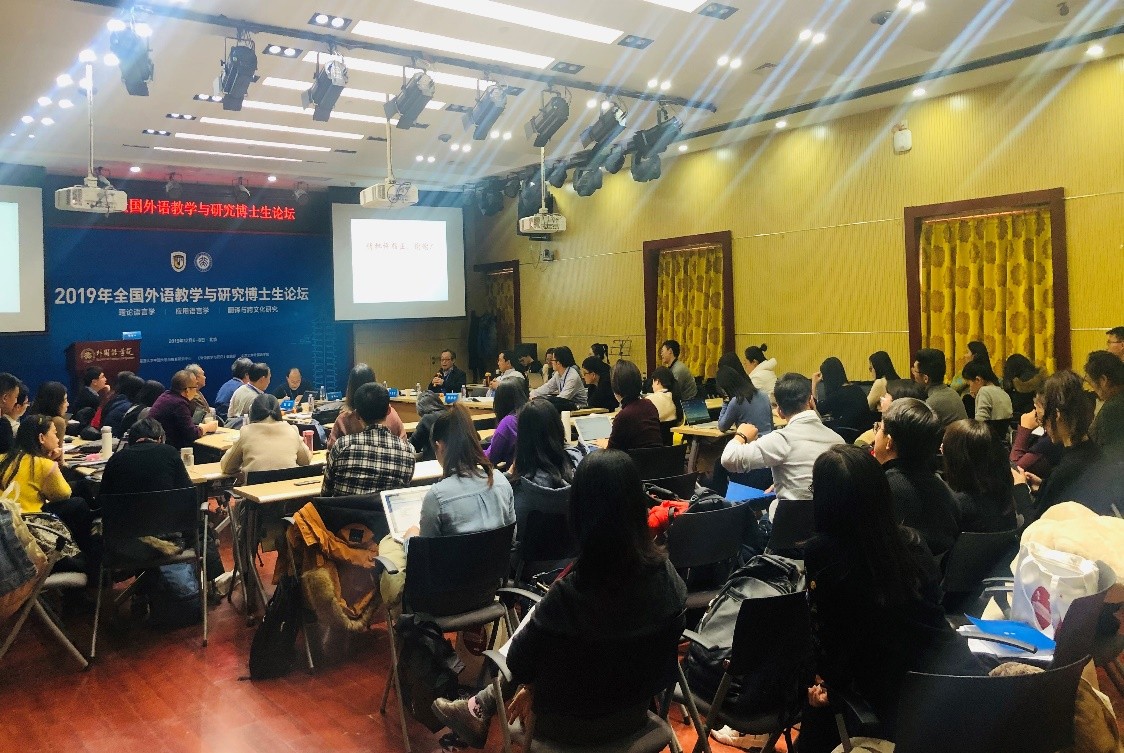 2019年12月7-8日,由北京外国语大学中国外语与教育研究中心、《外语教学与研究》编辑部、德赢vwin体育官网联合举办的“2019年全国外语教学与研究博士生论坛”在德赢vwin体育官网新楼501会议室顺利召开。来自德赢vwin体育官网、北京外国语大学、上海外国语大学、西安外国语大学、天津外国语大学、广东外语外贸大学、吉林大学、北京师范大学、东北师范大学等全国35所高校及科研机构的130余名师生出席了本次论坛。38名博士生分别在理论语言学、应用语言学、翻译与跨文化共计五个分会场上进行了论文开题报告和普通论文的汇报,30位专家对博士生的发言作了点评。此外,还进行了4场博导与博士生的座谈会。