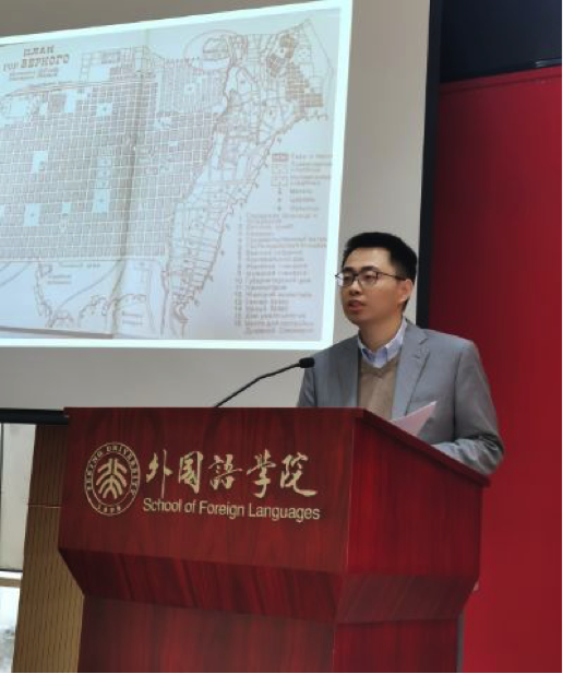 第四时段由北京外国语大学林建彬同学主持,德赢vwin体育官网阿拉伯语系助理教授李海鹏评议。第一位发言的是来自德赢vwin体育官网的彭源同学,题目是《月亮山:无法抵达的乌托邦——中世纪尼罗河源头的历史回溯》,第二位发言的是来自天津外国语大学的宋箫箫同学,题目是《从〈蓝灯〉中解读哈纳•米纳现实主义创作手法》,第三位发言的是来自对外经济贸易大学的魏丛丛同学,题目是《数字丝绸之路”视角下的中沙合作》。三位同学发言结束后,李海鹏进行了评议,针对给位同学的发言给出了自己的意见,指出了论文中存在的问题,如史料的逻辑连续性不强、注释不够严谨等,但他同时也对大家的辛勤劳作做出了肯定。点评结束后,同学们纷纷表示受益匪浅。