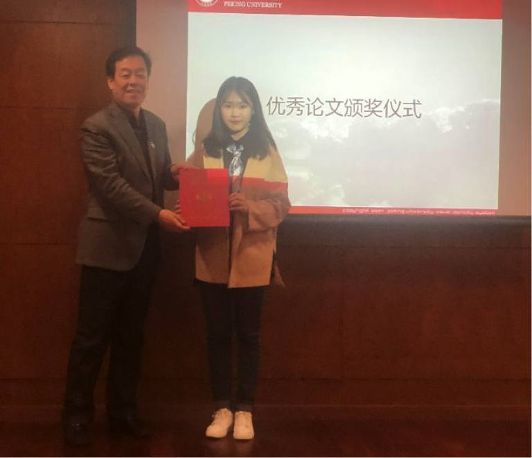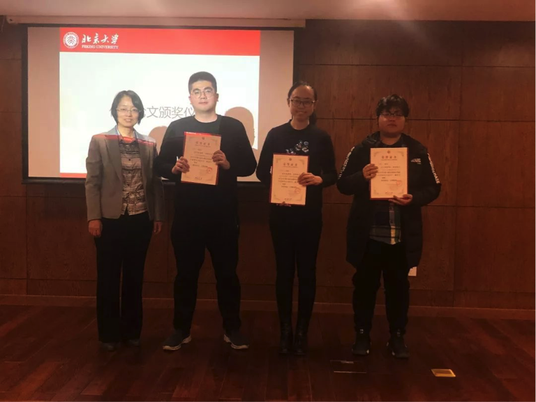 总结发言后,闭幕式进入了优秀论文颁奖环节。本届论坛由各评议老师组成专家评审组,经过认真的讨论之后,评选出优秀论文10篇,来自德赢vwin体育官网、北京外国语大学、对外经济贸易大学、上海外国语大学和北京第二德赢vwin体育官网的同学分别获得各个等级的奖项,包括特等奖1篇、一等奖2篇、二等奖3篇与三等奖4篇。李海鹏、施越、叶良英、肖凌、付志明等老师为获奖同学颁发了获奖证书和奖品。