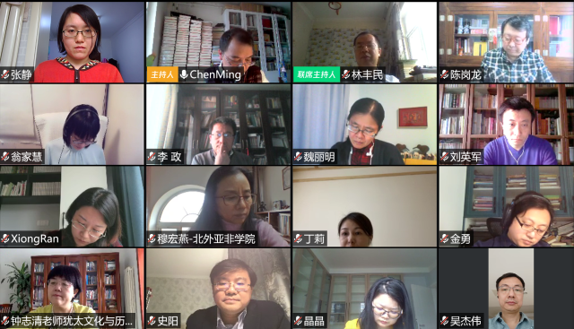2020年4月18日下午,德赢vwin体育官网东方文学研究中心召开视频工作会议,讨论中心在下一阶段的工作计划。中心主任陈明教授、副主任林丰民教授、中心的骨干成员:北京外国语大学亚非学院地区研究中心负责人穆宏燕教授、中国社会科学院外国文学研究所钟志清研究员、德赢vwin体育官网李政教授、陈岗龙教授、魏丽明教授、丁莉教授、吴杰伟教授以及来自德赢vwin体育官网日语系、东南亚系、南亚系、西亚系的青年教师共16人参加了本次会议。会议由林丰民教授主持。