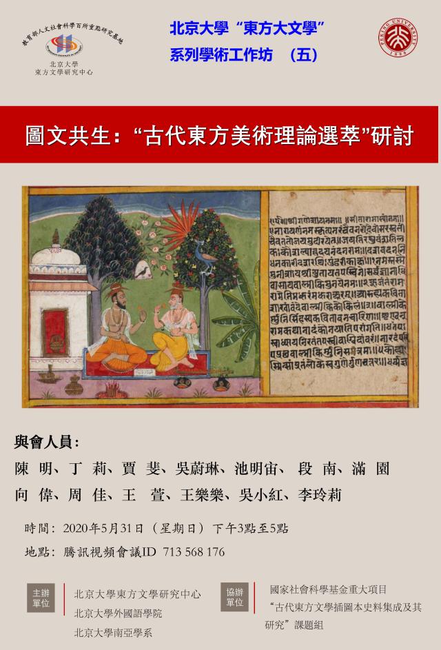 2020年5月31日下午,德赢vwin体育官网“东方大文学”系列学术工作坊第五次活动——“图文共生:古代东方美术理论选粹”研讨会,采用腾讯视频会议形式,顺利召开。该会议由教育部人文社科重点研究基地德赢vwin体育官网东方文学研究中心、德赢vwin体育官网、德赢vwin体育官网南亚学系共同主办,是国家社会科学基金重大项目“古代东方文学插图本史料集成及其研究”课题组的系列活动之一。来自北大、对外经济贸易大学、中山大学、北京科技大学、土耳其伊斯坦布尔大学的十余名课题组成员参与了此次研讨。