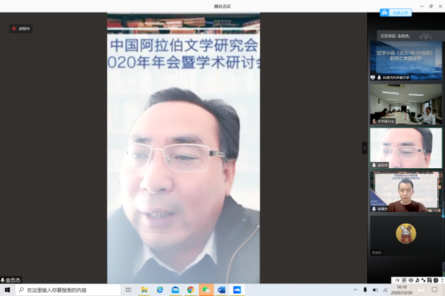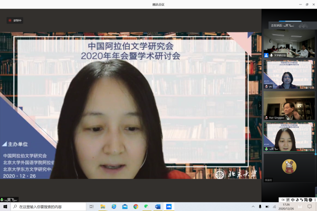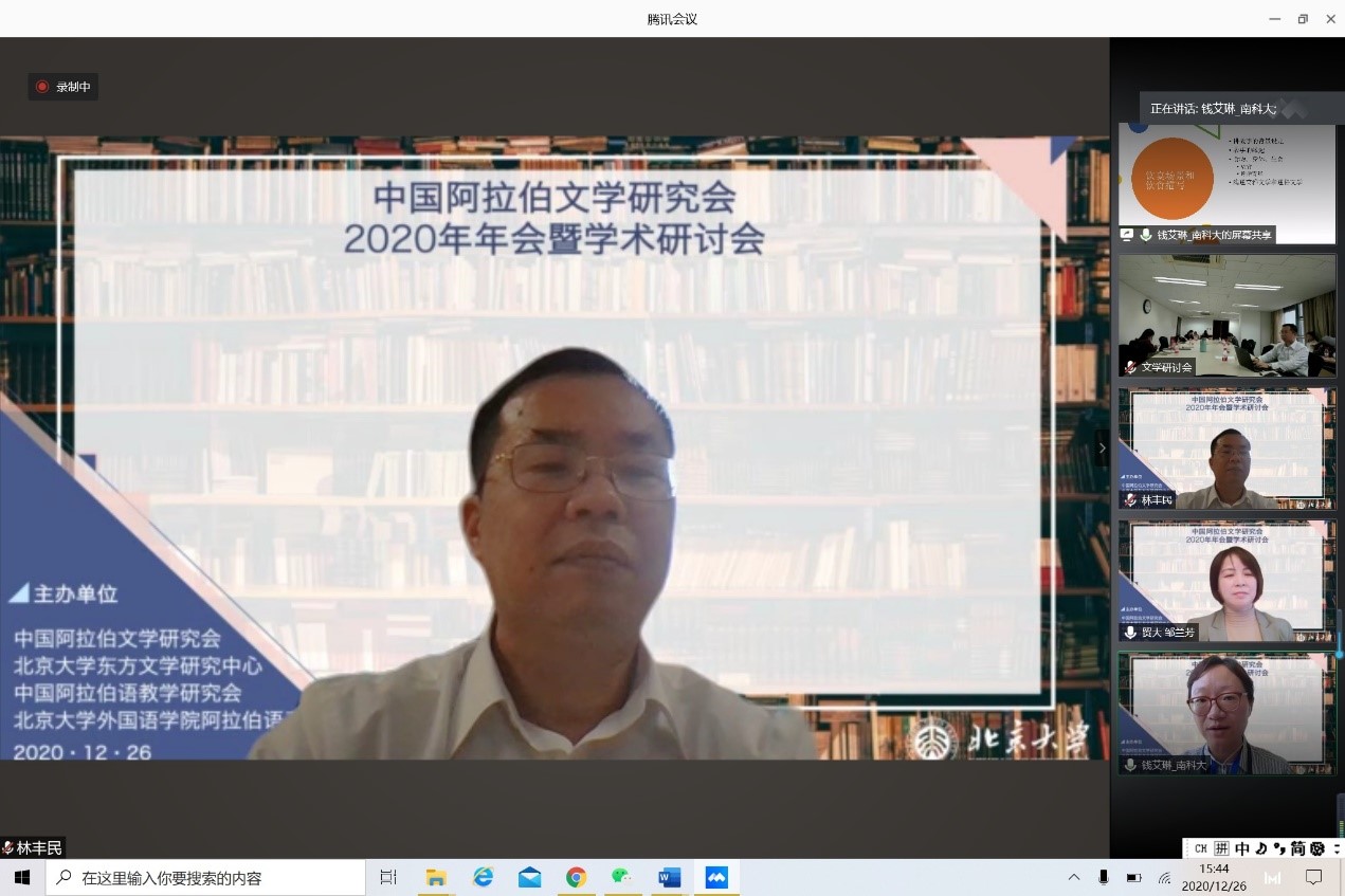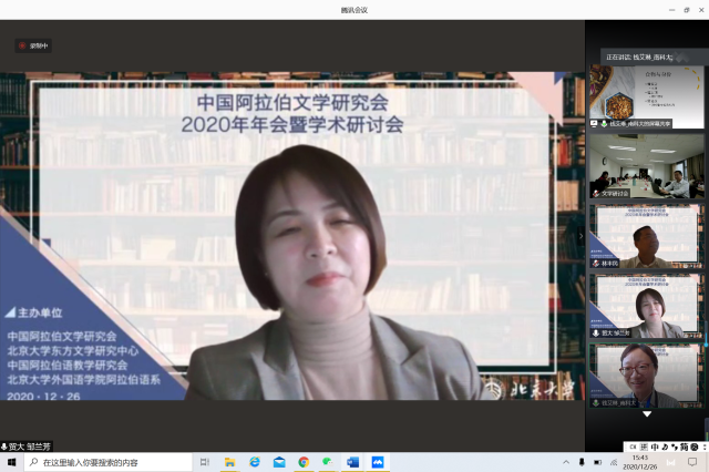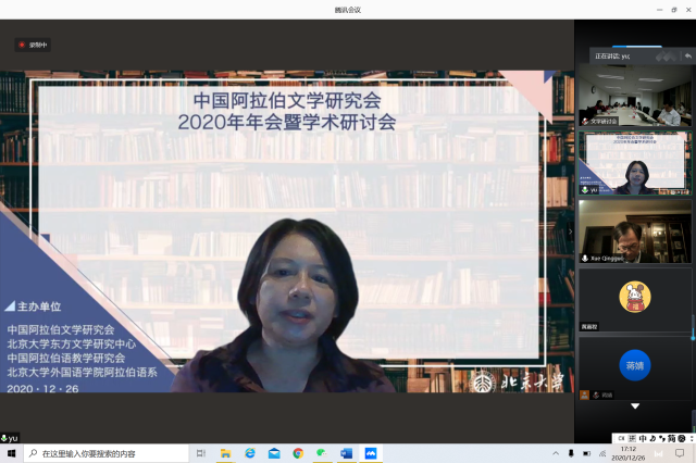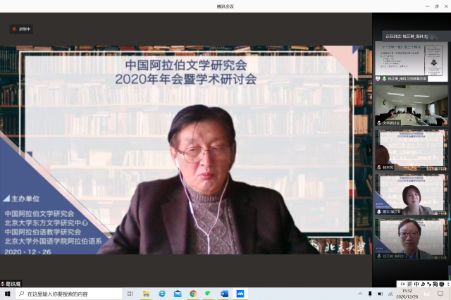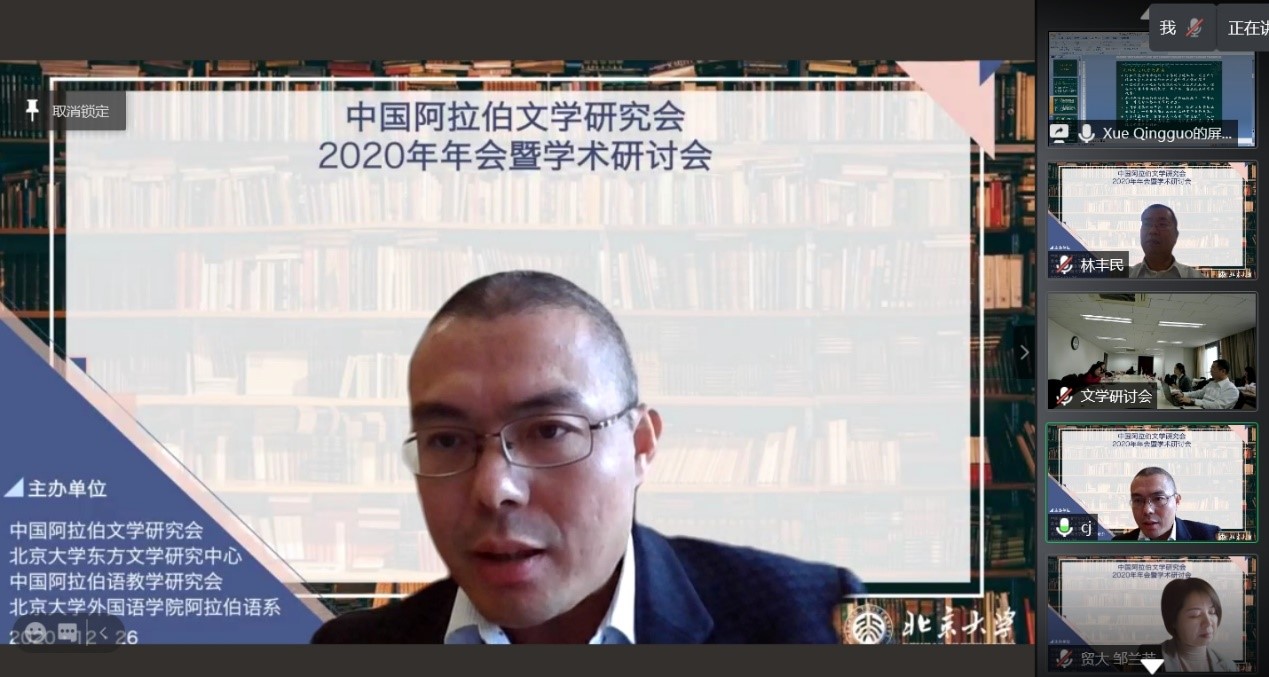 2020年12月26日,由中国外国文学学会阿拉伯文学研究分会、德赢vwin体育官网阿拉伯语系和德赢vwin体育官网东方文学研究中心联合举办的“中国外国文学学会阿拉伯文学研究分会2020年会暨学术研讨会”以线上线下混合的方式召开。本次会议共有来自德赢vwin体育官网、中山大学、对外经济贸易大学、宁夏大学、北京外国语大学、上海外国语大学、北京语言大学、南方科技大学、西北民族大学、西北师范大学、索邦大学文学院(巴黎四大)、威廉•玛丽大学、埃及亚历山大大学、马来西亚苏丹阿都哈林姆阿占沙国际伊斯兰大学和中国社会科学院外国文学研究所等高校和研究机构的100多人参加。开幕式由研究分会副会长、北京外国语大学谢赫扎耶德研究中心主任薛庆国教授主持。