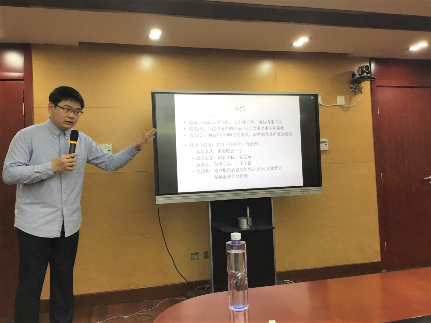 2021年4月2日下午,由德赢vwin体育官网南亚学系和教育部人文社科重点研究基地德赢vwin体育官网东方文学研究中心联合主办的德赢vwin体育官网南亚讲坛系列第三十次讲座,在德赢vwin体育官网新楼B134会议室顺利开讲。本次讲座由德国海德堡大学佛教学助理教授陈瑞翾主讲,他演讲的题目是《裸形外道死因之谜——(根本)有部<长阿含>梵本残篇举隅及其背景蠡测》。讲座由南亚学系陈明教授主持,萨尔吉副教授、叶少勇副教授担任与谈人。哲学系王颂教授、南亚学系湛如教授、范晶晶助理教授以及来自各院系的多名同学参与此次讲座。