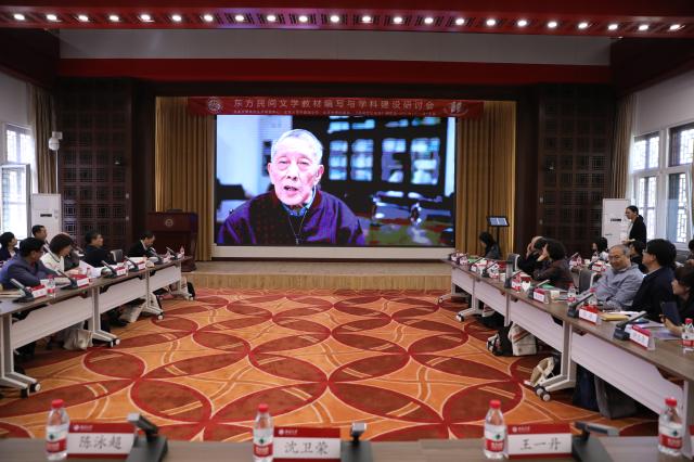 2021年4月19日,由教育部人文社会科学重点研究基地——德赢vwin体育官网东方文学研究中心与德赢vwin体育官网、德赢vwin体育官网出版社、《民间文化论坛》编辑部联合主办的“东方民间文学教材编写与学科建设研讨会”在德赢vwin体育官网顺利举行。来自中国社会科学院、清华大学、中国人民大学、北京外国语大学、中国传媒大学、北京师范大学、华中师范大学、上海外国语大学、南开大学、天津师范大学、南方科技大学、辽宁大学、内蒙古大学、河北师范大学、战略支援部队信息工程大学的专家学者百余人参与线上线下学术交流,就东方民间文学学科建设与教材编写进行了热烈的对话。