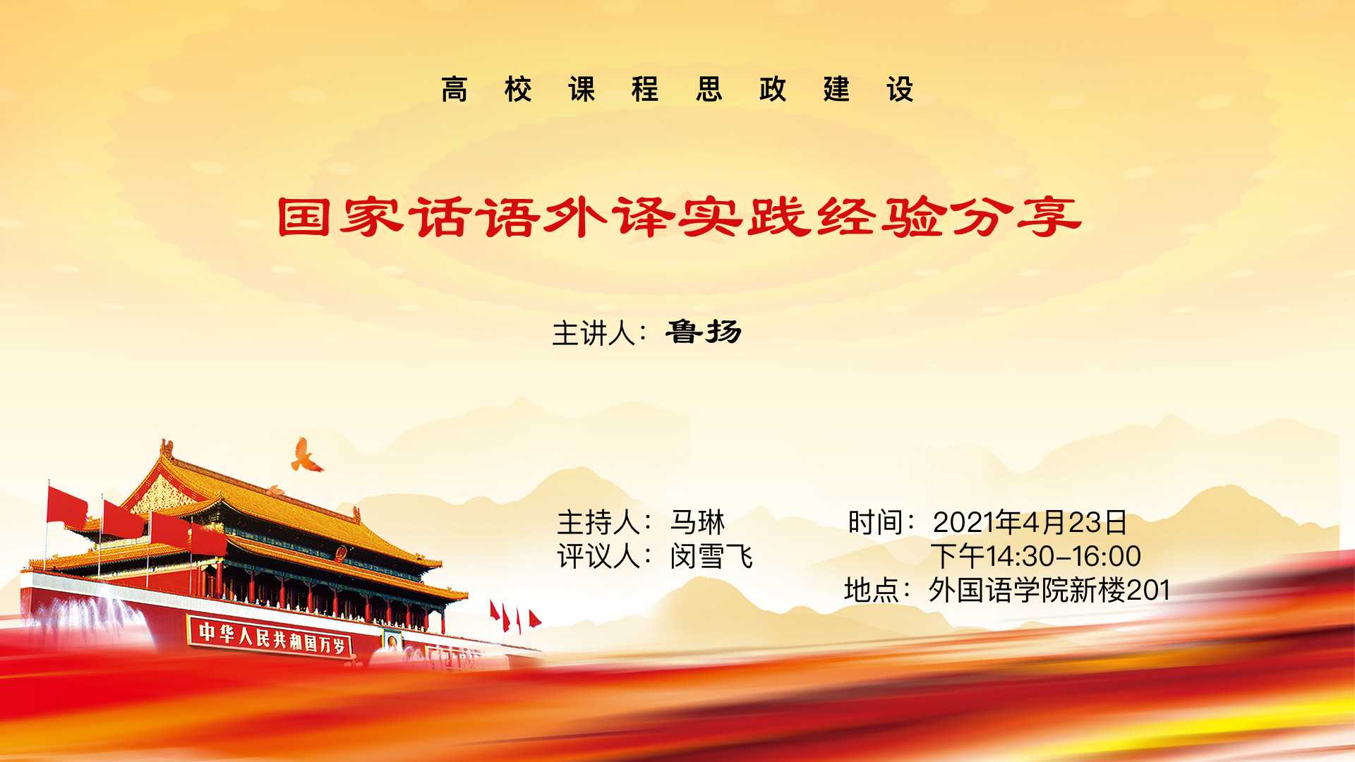 2021年4月23日下午,德赢vwin体育官网葡萄牙语专业举办以国家话语外译为主题的线下讲座,邀请人民网葡文版主编、《习近平谈治国理政》第三卷译者之一鲁扬老师主讲,为葡语专业师生带来思政学习与翻译实践结合的生动一课。作为葡萄牙语专业2021年春季课程思政建设系列活动的重要环节,本次讲座由葡语专业博雅博士后马琳老师主持,葡语专业负责人闵雪飞副教授评议。