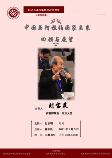 刘宝莱大使讲座:“中国与阿拉伯国家关系回顾与展望”——阿拉伯语系课程集群思政进课堂系列讲座之四