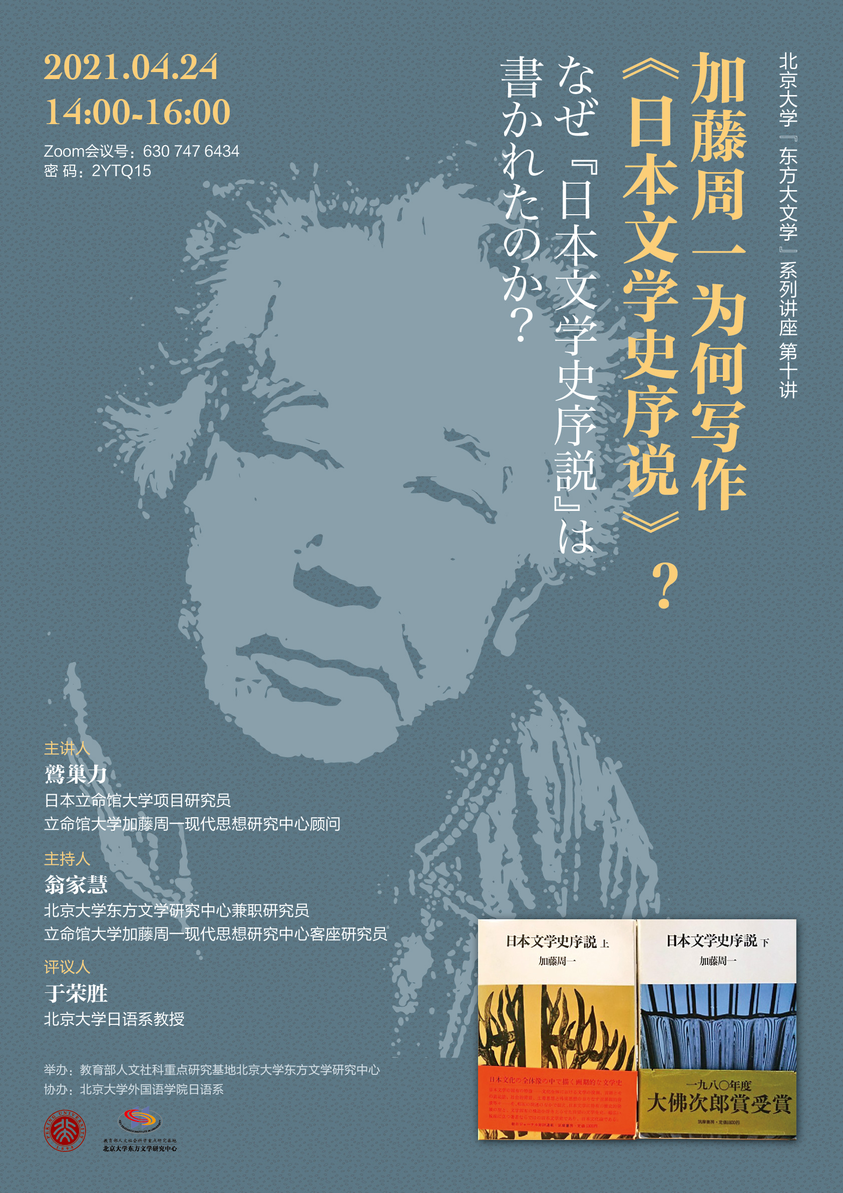 4月24日,德赢vwin体育官网东方文学研究中心成功举办“东方大文学”系列讲座第十讲“加藤周一为何写作《日本文学史序说》?”。主讲人鷲巢力研究员曾担任日本立命馆大学加藤周一现代思想研究中心主任,筹建并成立了加藤周一文库,现为该中心顾问。其个人专著有《阅读加藤周一》(2011)《加藤周一如何成为“加藤周一”:重读〈羊之歌〉》(2018)等,在加藤周一现代思想、日本战后文学史和思想史研究领域具有重要影响。受疫情影响,讲座采用线上方式进行,国内外高校师生近百人观看并参与了讨论。本次讲座由德赢vwin体育官网日语系协办,东方文学研究中心主任助理、日语系副教授翁家慧担任主持,日语系教授于荣胜担任评议人。