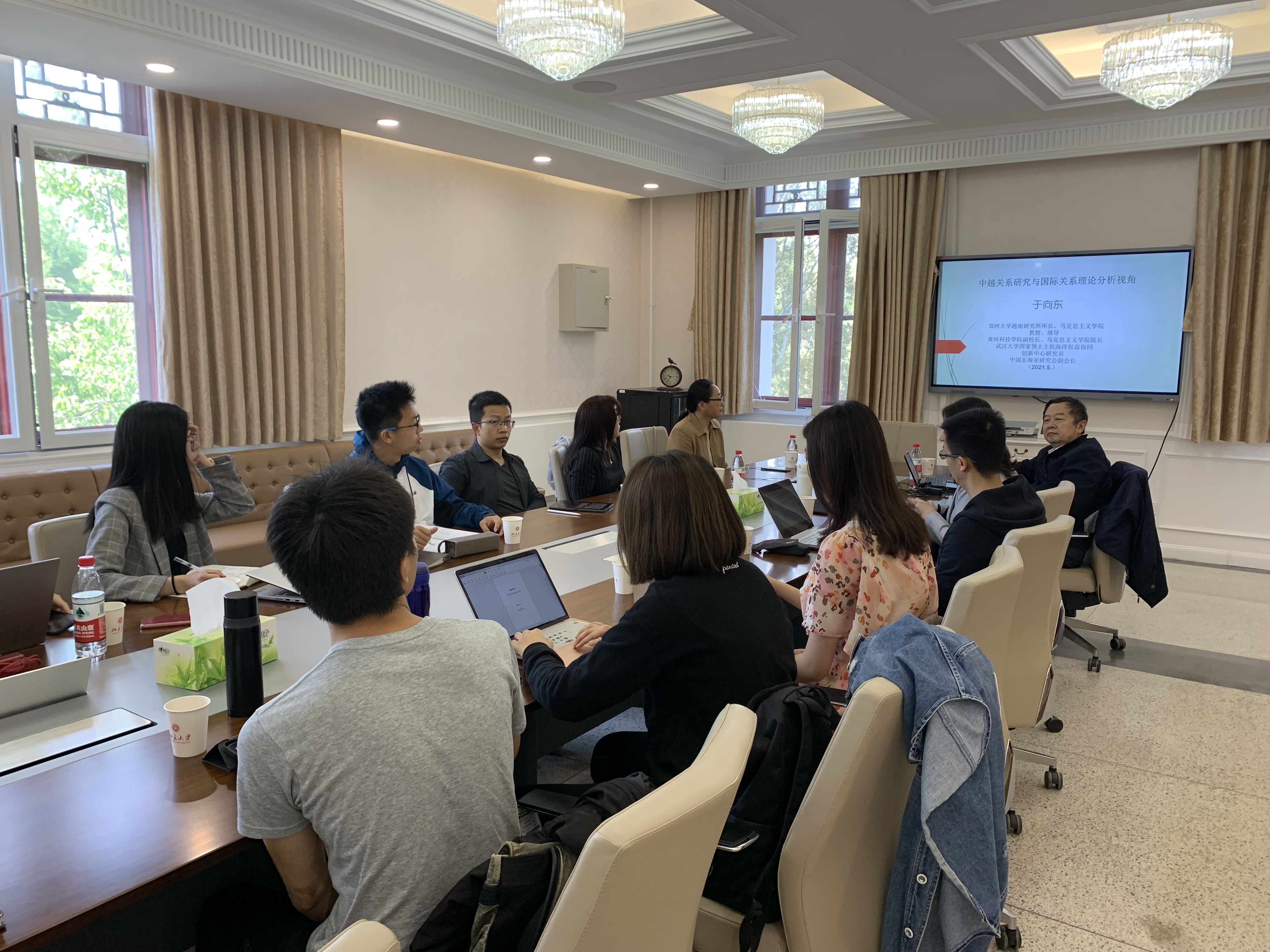 于向东教授长期从事越南历史与现状、南海问题和马克思主义理论研究,在国内外学术刊物和国内主流媒体上发表论文、译文100余篇,出版《越南》、《东方著名哲学家评传·越南卷》、《越南历史与现状研究》、《越南:革新开放中渐趋崛起》等著作多部。本次讲座围绕两个问题展开,一是理论思维、理论建构与国际关系、中越关系;二是理论分析方法建构及其在中越关系研究中的运用。