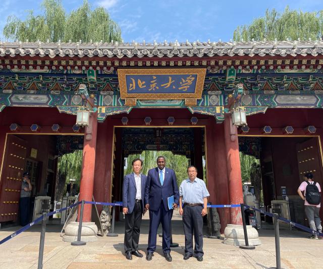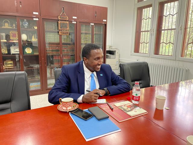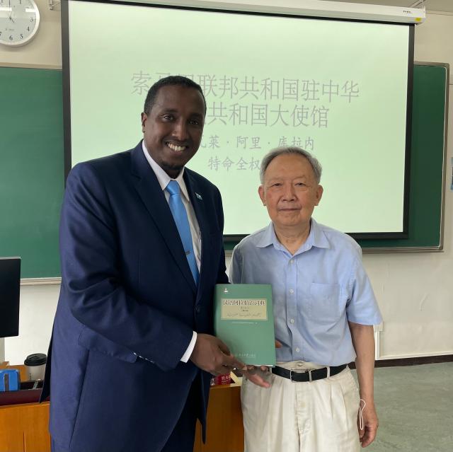 随后,阿瓦莱大使前往临湖轩与德赢vwin体育官网副校长王博举行会见。王博校长对索马里大使阿瓦莱的到来表示欢迎。他表示,德赢vwin体育官网是历史的见证者也是创造者,具有优良的学术传统和独特的综合学科优势。北大阿拉伯语系是中国最早建立的阿拉伯语专业。王博表示,北大欢迎索马里学者、学生的来访,希望今后可以借助北大德赢vwin体育官网阿拉伯语系合作平台,进一步推进与索马里高校的交流。阿瓦莱大使对北大的接待再三表示感谢。他表示,自己履职以来,一直致力于推动两国开展各领域合作,双方需要进一步加强了解,他本人及使馆愿意搭建起沟通的桥梁,打开双方交流的大门。