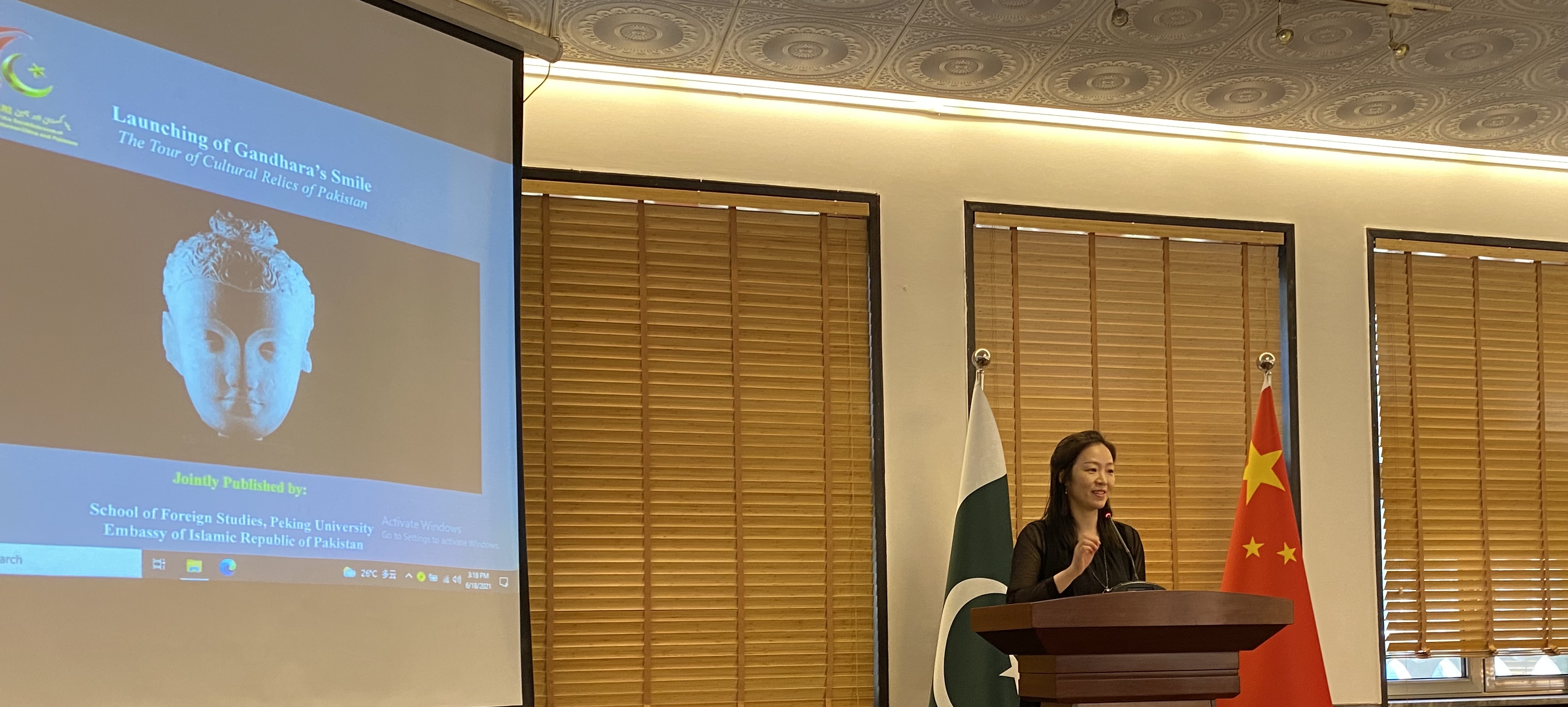 2021年6月18日下午,巴基斯坦驻华大使馆举办了《犍陀罗的微笑》一书的新书发布会,这也为中巴建交70周年系列庆典再添华彩。该书是中巴文化交流的代表性成果之一,结果于2018年春专家学者们的赴巴调研考察。考察团由德赢vwin体育官网段晴教授带队,成员分别来自德赢vwin体育官网、中国人民大学、故宫博物院等。第一次专项考察之旅虽然短暂,但是成员们在出发前带足了任务与问题,考察归来后先后在德赢vwin体育官网区域与国别研究院、人文社会科学研究院(文研院)等学术机构举办主题工作坊与学术论坛,并在德赢vwin体育官网的支持下,在文研院举办了为期两个月的图片展。在此次发布会上,核心成员欣然再聚,分享第一期成果的同时,期待疫情过后,再次启程。