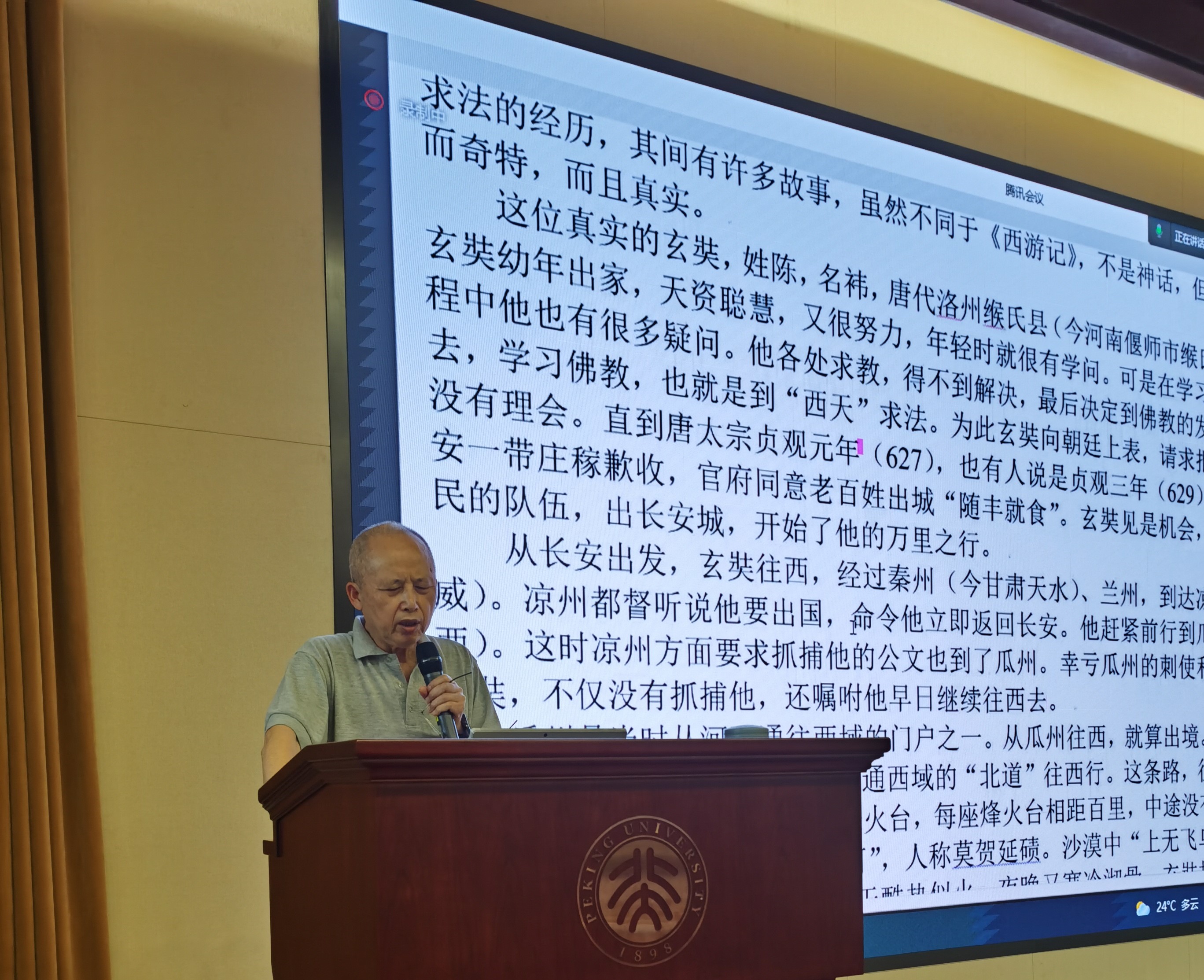 开幕式后,王邦维教授以《文学、宗教与历史:〈大唐西域记〉中的故事》为题,为本次暑期学校的正式课程拉开了帷幕。在讲座中,王邦维教授以唐代玄奘《大唐西域记》全十二卷内容中涉及的几个故事为引子,结合“西域”的地理、历史、宗教、文学、民俗等多方面的知识,详细的讲述这些故事中不同地区之间多姿多彩的文化交流历程;同时,在对文献进行追溯的过程中,王邦维教授也结合神话与传说的意义,高山与大河的地理考察,印度与中国传说的对接等问题分享了其研究工作的方法论和知识谱系。
