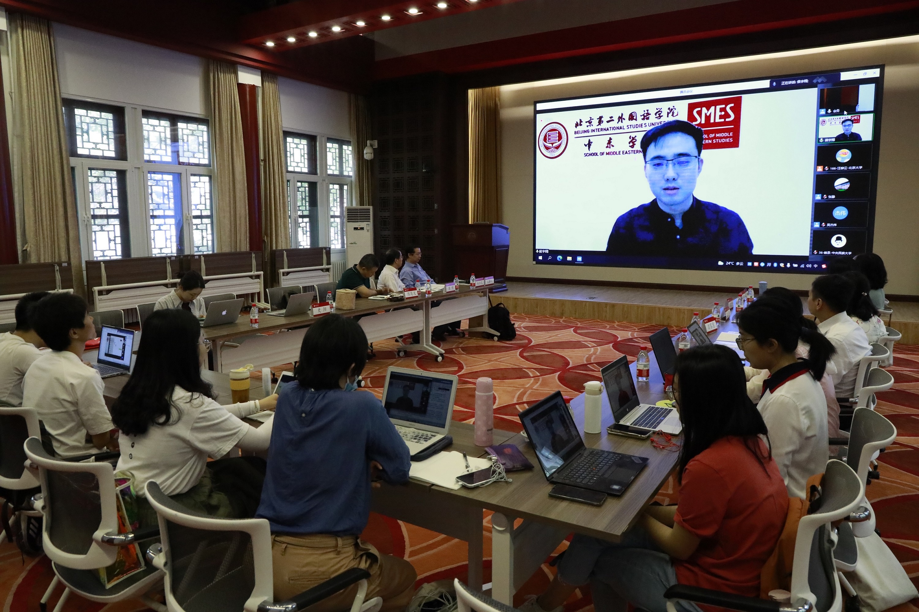 最后,本次暑期学校的协办方——北京第二德赢vwin体育官网中东学院的侯宇翔院长致辞。在致辞中,他首先对多年来促成暑期学校如期举办的前辈专家学者们表示衷心的感谢。他指出,德赢vwin体育官网东方文学全国研究生暑期学校授课内容丰富、品牌影响力深远、是广大学子和青年教师发现学术热点、贴近学术前沿的良好平台。他在介绍了北京第二德赢vwin体育官网同东方文学暑期学校合办缘由的同时,结合自身的科学研究、论文写作、教学经历回顾了诸如此类“高、精、尖”的科研对话平台对年轻学者们的巨大鼓励和“受用一生”的帮助。本次主题是“人类命运共同体”意识下的东方文学研究,这不仅贴近了当下时事动态,也启发着同学们在国别文学研究、区域文学研究的基础上树立“全球视野”,开展更广泛、更纵深的学术专攻。最后,他希望同学们把握机遇,在认真听讲中吸取授课老师们毕生积累的学术精华,在积极互动中收获学术知己和学术同道,把自己学术研究和人生“摆进去”,在学习中寻找论文适用点和突破点,在聆听课程中学习前辈们的严谨治学、脚踏实地的治学风格。