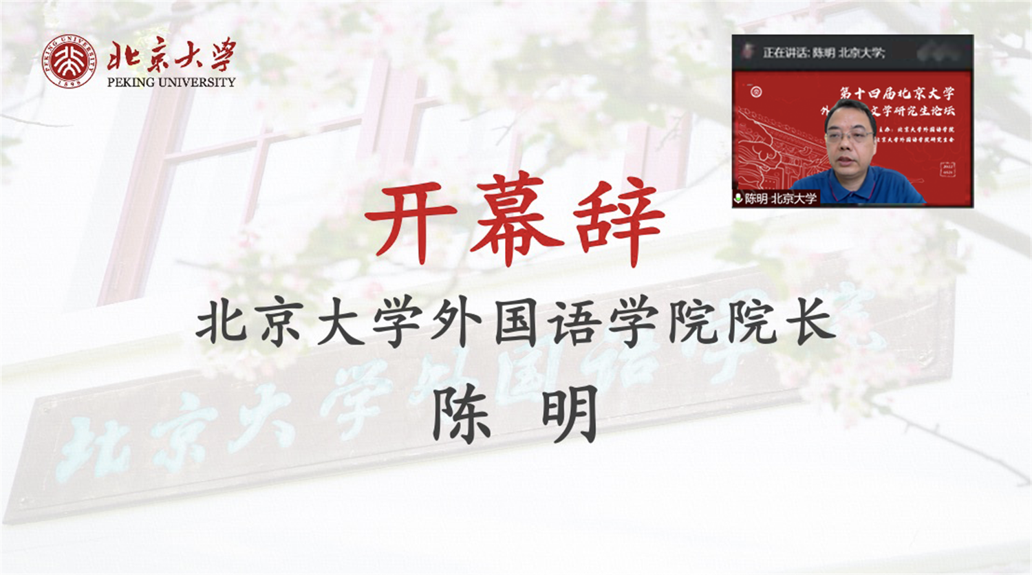 上午9时,论坛开幕式如期举行,陈明院长致开幕辞。陈明老师表示,外国语言文学研究生论坛是德赢vwin体育官网举办的重要学术交流活动之一,办会的初心是帮助外国语言文学学科的在读研究生了解最新研究动态,促进相互交流和学习,进而提高研究生的培养质量,推动学科的发展。陈老师回顾了论坛自2009年以来的发展历程,论坛从校内走向校外,从国内走向国外,来稿数量和稿件质量均稳步提升,年轻学子们高涨的学术热情、突出的科研能力和丰富的研究成果令人欣喜。本届论坛共有来自德赢vwin体育官网16个系、所、中心、专业的114名老师参与初评、一审、二审三个阶段的审稿工作,陈老师代表学院向参与审稿工作的老师致以诚挚的谢意,并向积极参与论坛活动的广大研究生同学、对论坛工作给予大力支持的海内外兄弟院校表达衷心的感谢。陈老师还指出,相比于两年前的云端办会,本届论坛有了更加完善的技术保障、更加丰富的办会经验和更加具体的活动安排,希望这次论坛能够成为各位同学求知路上的加油站,帮助年轻学子以取法乎上的志向、放眼全球的视野、脚踏实地的作风,心系家国,开启精彩的学术生涯。