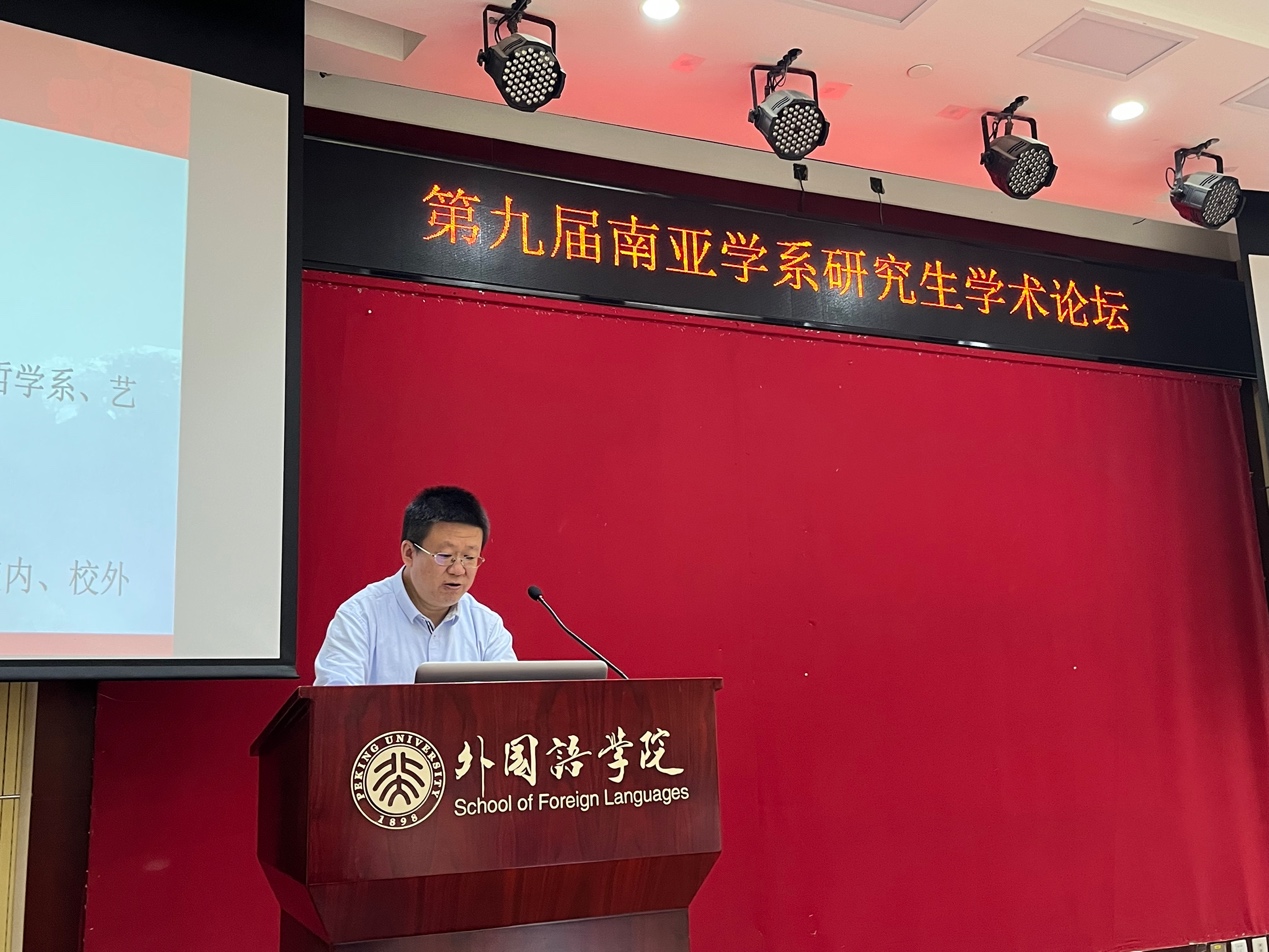 陈明老师首先回顾了往届论坛的举办情况,充分肯定了以往获奖论文的学术价值与学术潜力。他强调,许多优秀论文借由论坛交流的机会得以打磨,最终成功发表。他期待各位同学能够通过本论坛,传承季羡林先生在跨文化研究中展现的广阔胸襟和视野,也期待本论坛未来能够成为南亚学系和北大外院的学术品牌之一。