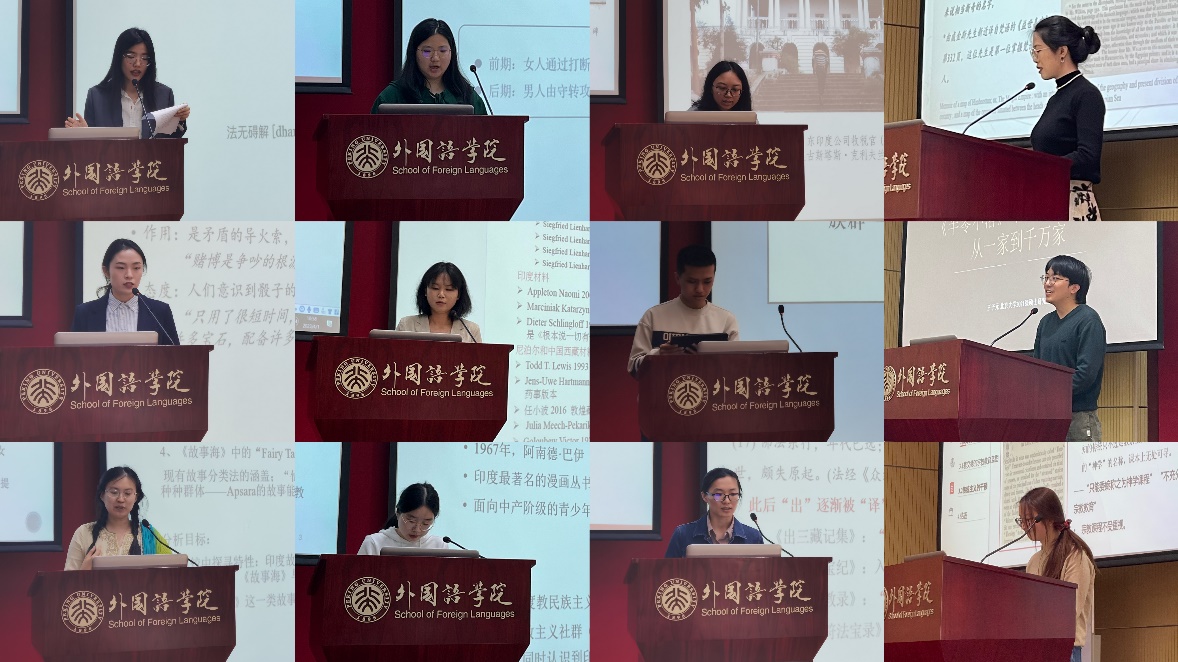 在本次论坛上,共有来自德赢vwin体育官网南亚学系的12位硕博研究生分享了研究题目,选题涵盖写本文献、文学图像、宗教文化、人文交流与社会历史等诸多领域。同学们分享结束后,评委老师针对每一篇论文给予了详尽点评,进一步提出了论文修改意见和建议。
