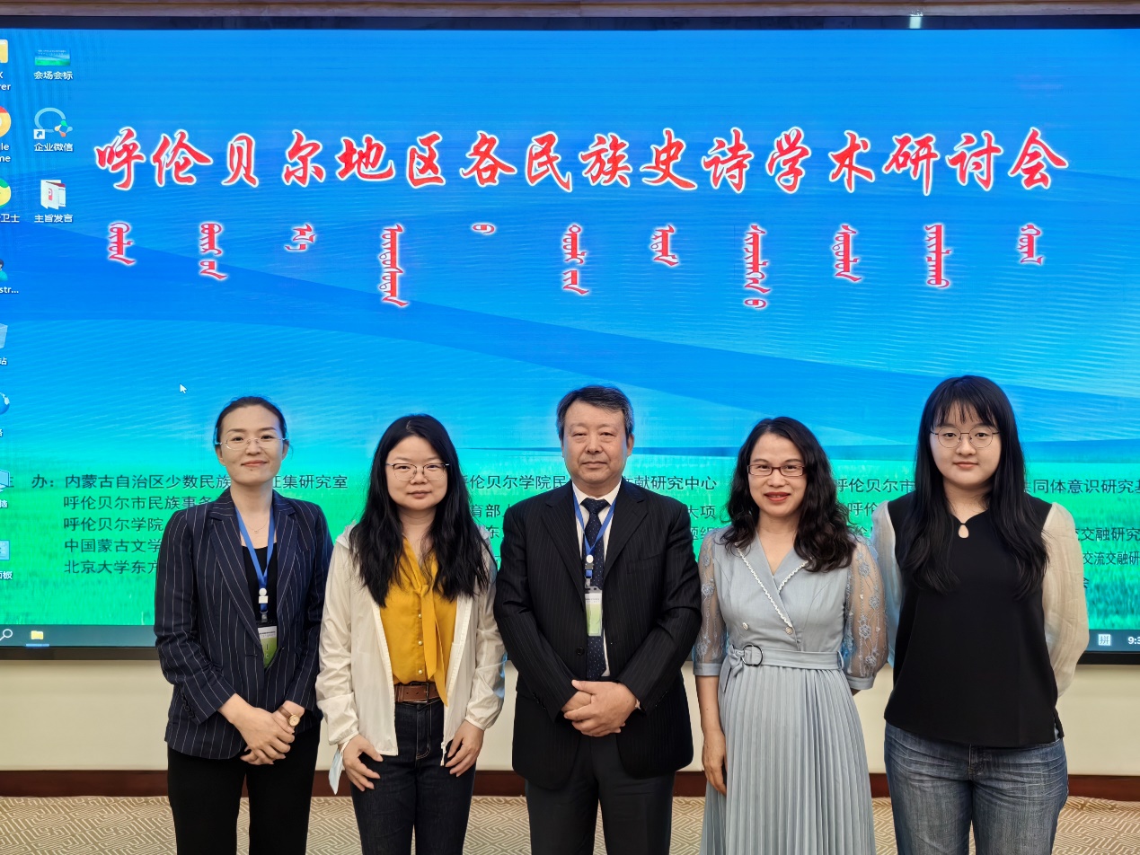 2023年6月16日至18日,由教育部人文社会科学重点研究基地德赢vwin体育官网东方文学研究中心与内蒙古自治区少数民族古籍征集研究室、呼伦贝尔市民族事务委员会、呼伦贝尔学院及中国蒙古文学学会联合主办的“呼伦贝尔地区各民族史诗学术研讨会”在内蒙古呼伦贝尔市顺利召开,同时举行了史诗说唱艺术交流演出。学术研讨与史诗演唱结合的形式受到了与会专家学者的欢迎,产生了广泛影响。研讨会由教育部人文社会科学重点研究基地重大项目“东方史诗的翻译与研究”课题组、呼伦贝尔学院民族历史文献研究中心和内蒙古大学“江格尔”研究中心共同承办,“东方史诗的翻译与研究”课题组负责人陈岗龙教授,课题组成员夏露副教授、范晶晶副教授、博士研究生张京京和内蒙古社会科学院白图亚副研究员代表“东方史诗的翻译与研究”课题组参会并发言。