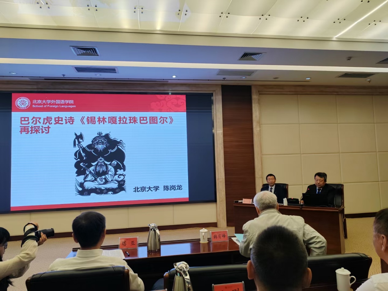 2023年6月16日上午,会议开幕式由呼伦贝尔市委统战部副部长、市民族事务委员会党委书记、主任特木日胡主持,呼伦贝尔学院副院长尹立军教授致欢迎辞,中国蒙古文学学会会长、中国社会科院院民族文学研究所斯钦巴图研究员和内蒙古自治区少数民族古籍征集研究室主任苏雅拉图分别讲话。陈岗龙教授代表德赢vwin体育官网东方文学研究中心向呼伦贝尔学院赠送《东方文学研究集刊》及个人学术专著。在主旨发言环节,陈岗龙教授第一个做题为《关于巴尔虎史诗〈锡林嘎拉珠巴图尔〉的再探讨》的主旨演讲,课题组成员白图亚副研究员做《鄂温克族史诗与布里亚特史诗母题比较研究——以鄂温克族史诗〈宝日勒岱莫日根〉与布里亚特〈江格尔〉为例》的主旨发言。下午,会议分组讨论。第一组由陈岗龙教授主持,内蒙古大学“江格尔”研究中心主任塔亚教授评议,“东方史诗的翻译与研究”课题组成员夏露副教授、范晶晶副教授、博士生张京京分别宣读论文《史诗英雄江格尔和达姆伞形象的比较研究》《印度两大史诗》《日尔蒙斯基史诗学研究初探》,并获得与会专家学者好评。闭幕式上,陈岗龙教授作分组讨论总结。