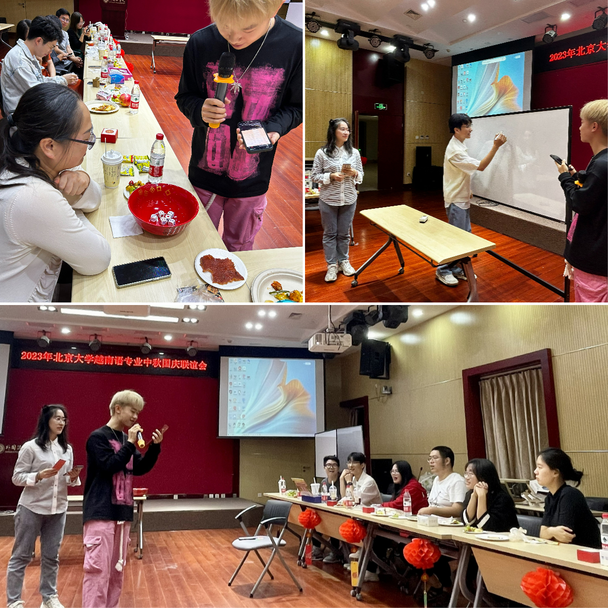 9月26日晚,越南语专业2023年中秋国庆联谊会在外院新楼501举行。参加活动的除越南语专业全体师生外,还特别邀请了本专业退休教师赵玉兰教授以及毕业校友、越南留学生、越南语课程的旁听生共同参加。