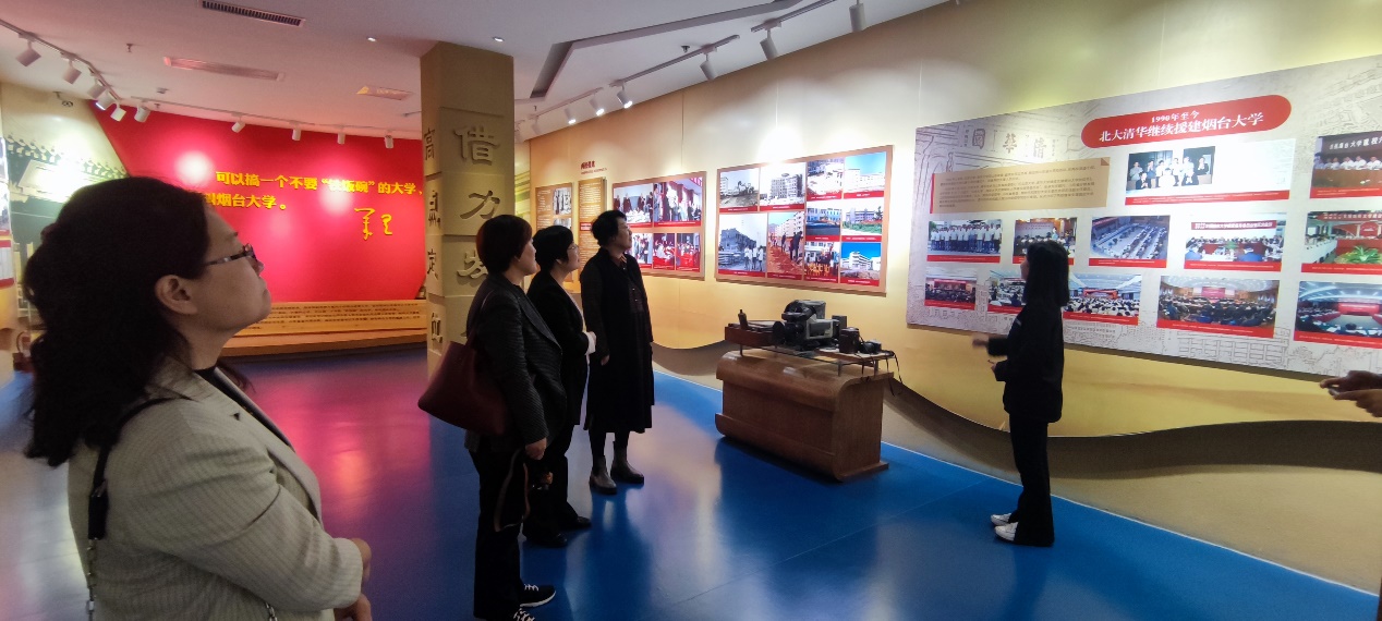 在了解了烟大外院建设情况后,一行人先后参观了烟台大学校史馆、逸夫图书馆、八角湾新校区,并赴胶东红色文化陈列馆接受党性教育。