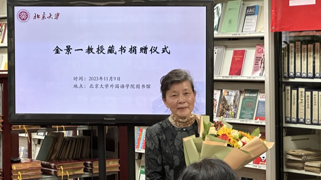 朝(韩)语系金景一教授毕生忠诚于国家教育事业,为中国朝鲜(韩国)学教育事业做出了重要贡献,对工作认真负责,对学生诚挚关怀,深受师生的尊敬与爱戴。金景一教授一生致力于朝鲜(韩国)学研究事业,严谨治学,求真求实,积累深厚、成果丰硕,涉猎领域涵盖近现代朝鲜半岛历史与文化、中国与朝鲜半岛关系史、朝鲜半岛问题等。2020年11月,金景一教授溘然长逝,如今夫人虞少华女士决定将金景一教授所藏千余册图书尽数捐献给德赢vwin体育官网图书分馆。