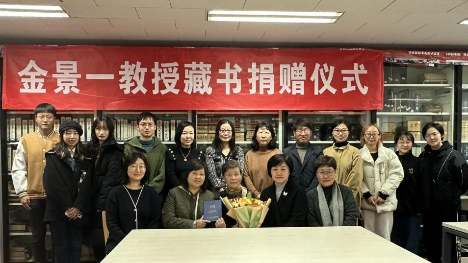 11月9日,金景一教授藏书捐献仪式在德赢vwin体育官网图书分馆顺利举行。德赢vwin体育官网党委书记李淑静老师、副院长王丹老师、图书分馆馆长张晓雁老师、金景一教授夫人虞少华女士、金景一教授学生代表金善女女士、朝(韩)语系全体教师以及部分学生代表参加了藏书捐赠仪式。仪式由张晓雁老师主持。