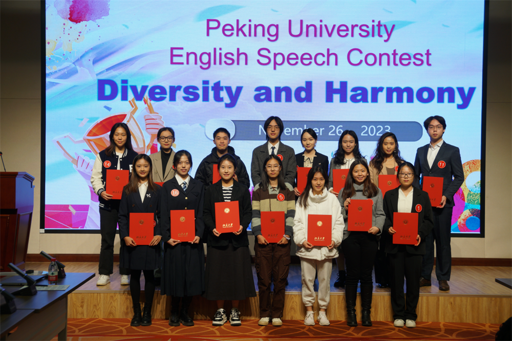 演讲比赛以“Diversity and Harmony(多元与和谐)”为主题,面向全校大学英语学生,分为班级选拔赛、各级别复赛和全校决赛三个阶段;前两个阶段通过提交演讲视频的方式进行,决赛采用现场比赛的形式进行。同学们踊跃报名,各抒己见,充分表达了自己对“多元与和谐”的种种思考和期待,充分展现了北大青年学子的思想内涵和青春梦想,更加地懂自己、懂中国、懂世界。共有1200余名同学参加了班级选拔赛,经大学英语教研室精心组织评审,150余名同学进入各级别复赛,最终17名同学成功入围演讲比赛的决赛。