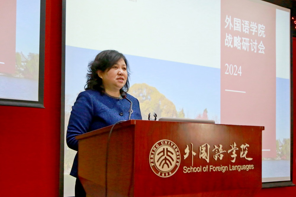 2024年3月10日,德赢vwin体育官网2024“学科质量年”战略研讨会在外院新楼501多功能厅举行。本次专题研讨会旨在深入学习贯彻学校寒假战略研讨会精神,落实“学科质量年”工作要求,全面总结经验,深入交流思想,推动北大外国语言文学学科高质量发展。党委书记李淑静、院长陈明以及全体党政班子成员,院学术委员会、学位评定委员会学科分会、教学委员会成员,各系所专业、行政科室和教职工党支部负责人60余人参加此次会议。会议邀请德赢vwin体育官网师资人才办公室常务副主任、人事部副部长贾爱英,教务部副部长刘建波、研究生院培养办公室副主任刘柯,社会科学部副部长、学科建设办公室副主任林丰民作专题分享。学院党委副书记张冬梅主持会议。