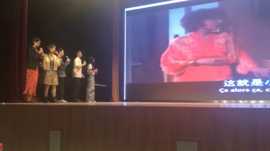 我院法语系2021级本科生组成的“coupé队”第一轮配音片段为Le Père Noël est une ordure,第二轮配音片段为Du vent dans mes mollets,两个片段的演绎均受到现场评委老师好评。