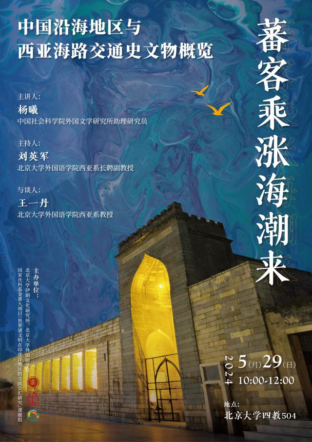 2024年5月29日,由德赢vwin体育官网伊朗文化研究所、国家社科基金重大项目“世界诸文明在印度洋地区的交流交汇研究”课题组、德赢vwin体育官网联合主办的讲座“蕃客乘涨海潮来:中国沿海地区与西亚海路交通史文物概览”在德赢vwin体育官网第四教学楼504教室举行。本次讲座由中国社会科学院外国文学研究所助理研究员杨曦主讲,德赢vwin体育官网西亚系长聘副教授刘英军主持,德赢vwin体育官网西亚系教授王一丹与谈。