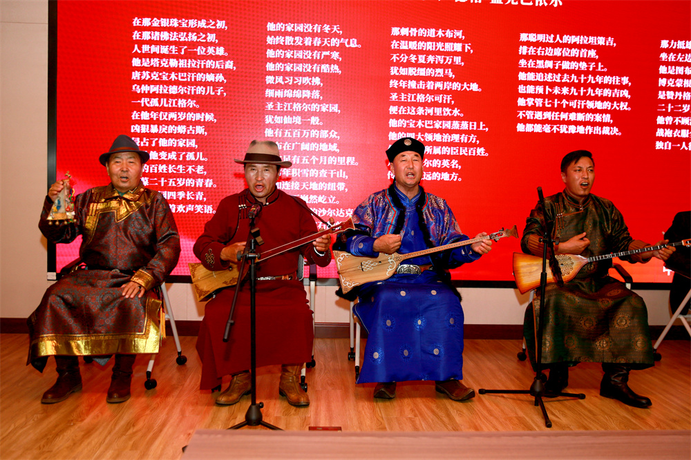 随后,由蒙古族史诗《江格尔》的4位史诗艺人——江格尔奇演述了《江格尔十二英雄赞》。德赢vwin体育官网陈岗龙教授向观众介绍了北大外院东西方史诗翻译与研究的成果。他指出,《江格尔》代表了蒙古族英雄史诗的最高成就,且流传区域广泛,具有跨民族跨地区特征。阅读史诗文本和掌握民族语言后直观地欣赏史诗演唱有着本质上的区别,而表演正是活形态史诗的魅力所在。