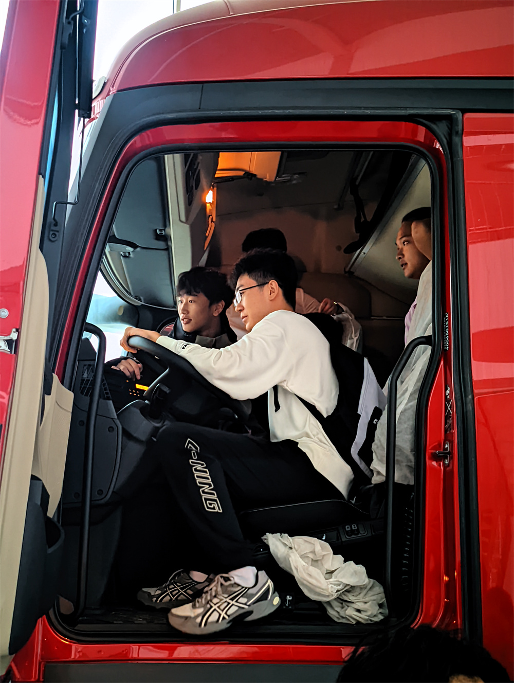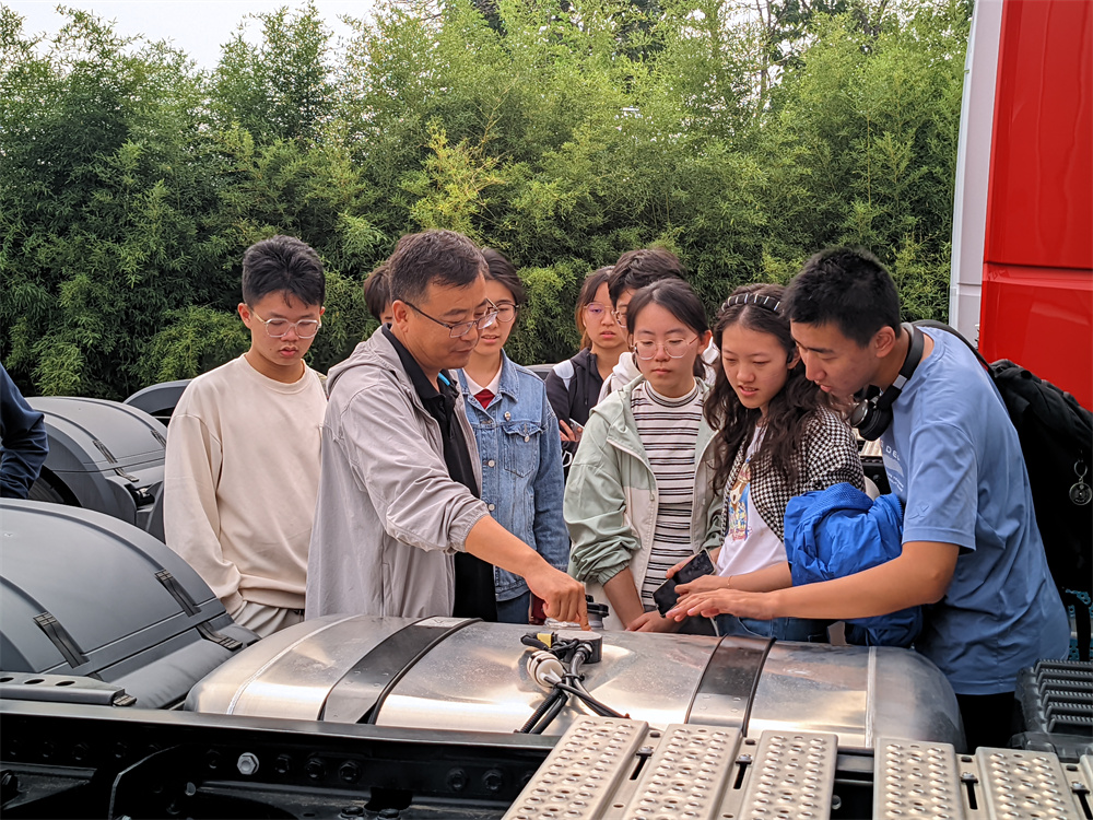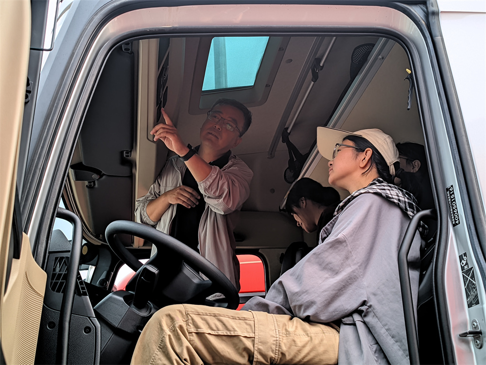 窦店利元车业属于窦店集体经济下的产业之一,经过多年发展,利元车业已成长为集多品牌轻、中、重卡汽车销售,维修服务于一体的集团公司。在车辆展示区,工作人员为同学重点介绍了奔驰牵引头的构造以及销售链情况,并让同学们有机会坐入驾驶舱,亲身体验牵引头的设计理念与性能优势。