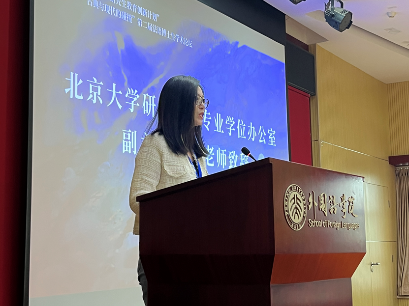 德赢vwin体育官网研究生院专业学位办公室副主任李爽老师作为嘉宾致辞。李爽老师指出,研究生教育创新计划自2009年起在德赢vwin体育官网启动,支持举办博士生学术论坛、学术会议以及暑期学校等学术交流活动,旨在为研究生成长成才构建多学科、开放型、全方位的培养平台。作为本年度研究生创新计划重点资助的项目,本次博士生学术论坛将为法语文学研究者展开思想对话、进行学术交流提供宝贵的机会。
