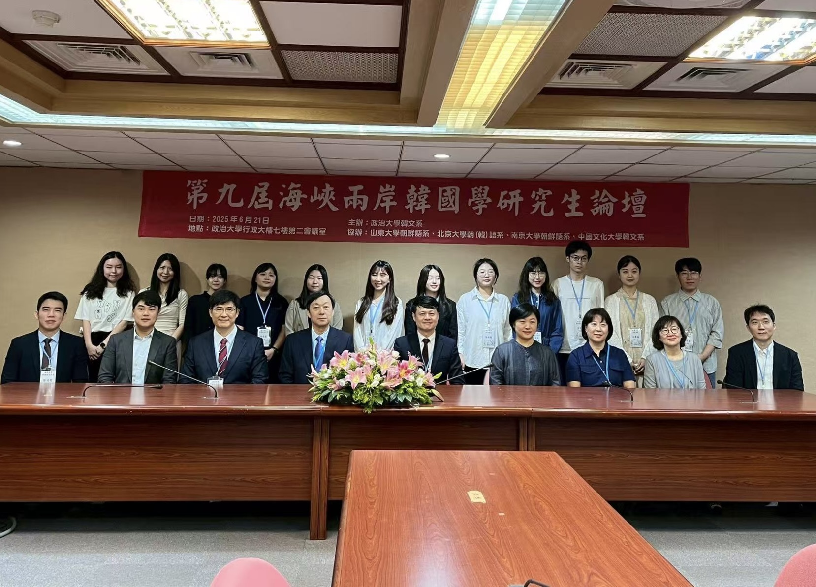 2025年6月21日,“第九届海峡两岸韩国学研究生论坛”在台湾政治大学行政大楼7楼第二会议室举行。来自德赢vwin体育官网、台湾政治大学、山东大学、南京大学、台湾中国文化大学的三十余名专家学者与研究生参会。“海峡两岸韩国学研究生论坛”由德赢vwin体育官网朝鲜(韩国)语言文化系、山东大学韩国学院、台湾政治大学外国语文学院韩国语文学系于2014年联合发起,2017年南京大学德赢vwin体育官网朝鲜语系加入。随着今年台湾中国文化大学国际暨外语学院韩国语文学系的加入,论坛已扩展为五校论坛。