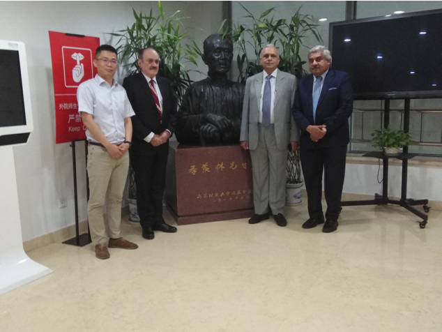 在会谈结束时,辨喜基金会代表团向王旭副教授赠送了礼品以示双方的友谊。之后应印方请求,双方代表在季羡林像前合影留念。