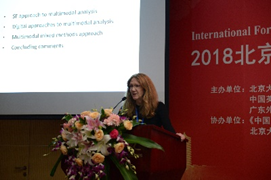 胡壮麟教授从符号化视角探讨了碎片化现象。他指出,自上世纪末,学术界除谈论学科的融合外,也关注碎片化(fragmentation)现象的频繁出现,碎片化时代似乎已经到来。胡教授试图从符号学视角,讨论碎片化与符号的表现和特征。胡教授总结了碎片化的优势与问题,并探讨了如何避免和防止这些问题,以引导碎片化的健康发展。Wendy Bowcher 教授探讨了言语艺术的研究现状和未来发展,解释了该领域的社会价值及理论价值,展示了最新的研究进展,为未来研究提供了参考。例如,未来可能研究的方向有:探究言语艺术在语言演化过程中的作用及与社会的关系,阐释其发展的方式及其理据,分析使用同种语言资源的不同作者的言语艺术等。她从社会符号视角,强调了言语艺术是一种语言活动,对揭示语言和文化特征具有十分重要的作用。Jonathan Webster教授讲述了语言所拥有的制造隐喻的潜力(metaphor-making potential)。他从三段历史(个体发生、种系发生和语篇发生)和三个阶段(泛化、抽象化和语法隐喻)来探讨语言隐喻化发展进程。Webster 教授指出Halliday的隐喻化阶段与悉尼大学精神病学教授Russell Meares提出的语言制造隐喻潜力的见解具有相似性。最后,他结合对当代诗人、音乐家作品的实例分析,指出语言隐喻化发展的下个阶段是神话(myth)。