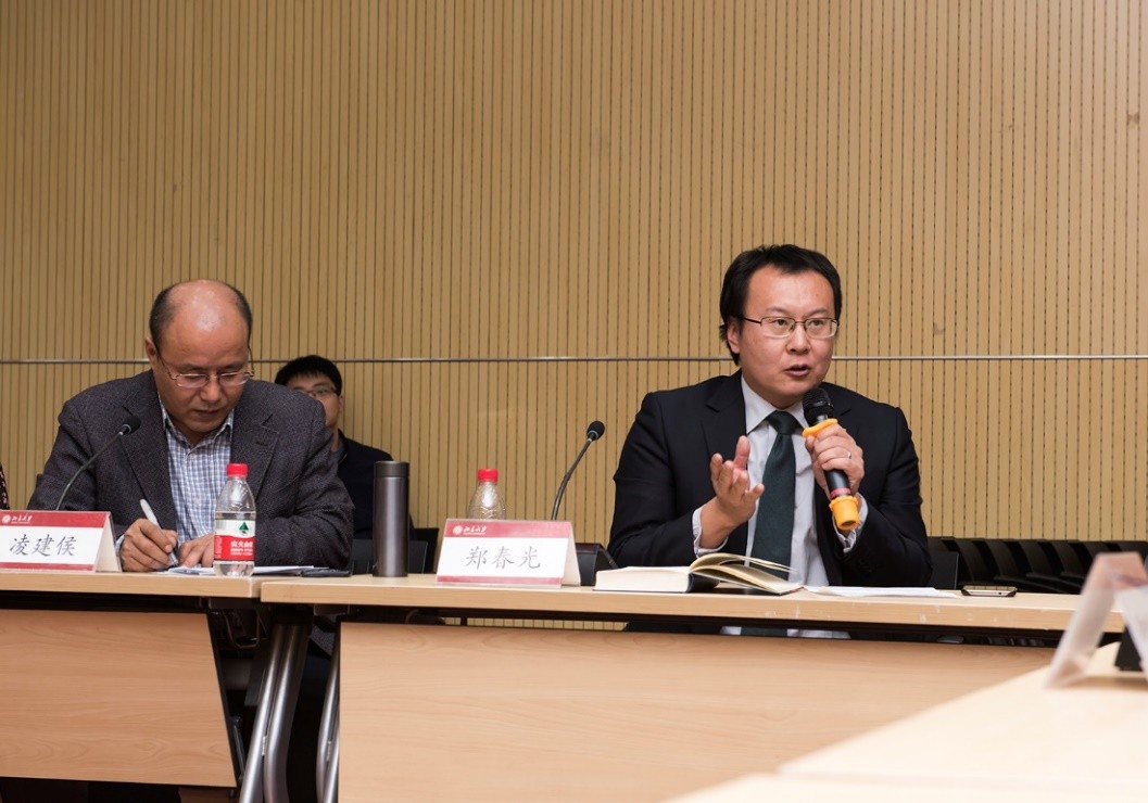 26日晚上,第一场讲座主题为“中国理念与美国政治:作为21世纪典范的18世纪中美关系”,由凌建侯教授主持。霍农教授以歌德和马克思关于世界文学的论述为引子,强调在无产阶级世界革命之外跨文化交流的重要性,将孔子作为一座全球跨文化交流的重要桥梁。霍农教授详细介绍了孔子思想对18世纪欧洲启蒙主义学者和美国国父们的深刻影响,揭示出其在西方发展历程中所起到的重大作用,并以此为基础,预言中国在21世纪扮演的角色:通过“一带一路”倡议和深度参与全球环境治理,构建经济和政治合作的跨国网络;借助孔子学院在世界范围的推广,为世界营造跨文化交流的平台。德赢vwin体育官网英语系教授刘意青作为评议人,对霍农教授第一讲内容作了精彩点评,高度评价了他在挖掘孔子思想在西方历史进程中的作用方面所做的分析,认为演讲逻辑清晰,例证详实,也赞同他对“一带一路”倡议作为跨文化、跨区域、跨国家媒介的观点;她进一步指出,孔子“有教无类”教学思想早于柏拉图和亚里士多德,并对孔子思想在世界的影响方面作了一些补充。