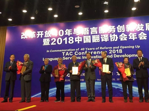 2018年11月19日上午,改革开放40周年与语言服务创新发展论坛暨2018中国翻译协会年会在北京举行。仲跻昆先生获得了代表我国翻译界最高荣誉的“翻译文化终身成就奖”。此前,德赢vwin体育官网的季羡林先生、许渊冲先生都曾获得过该奖项。